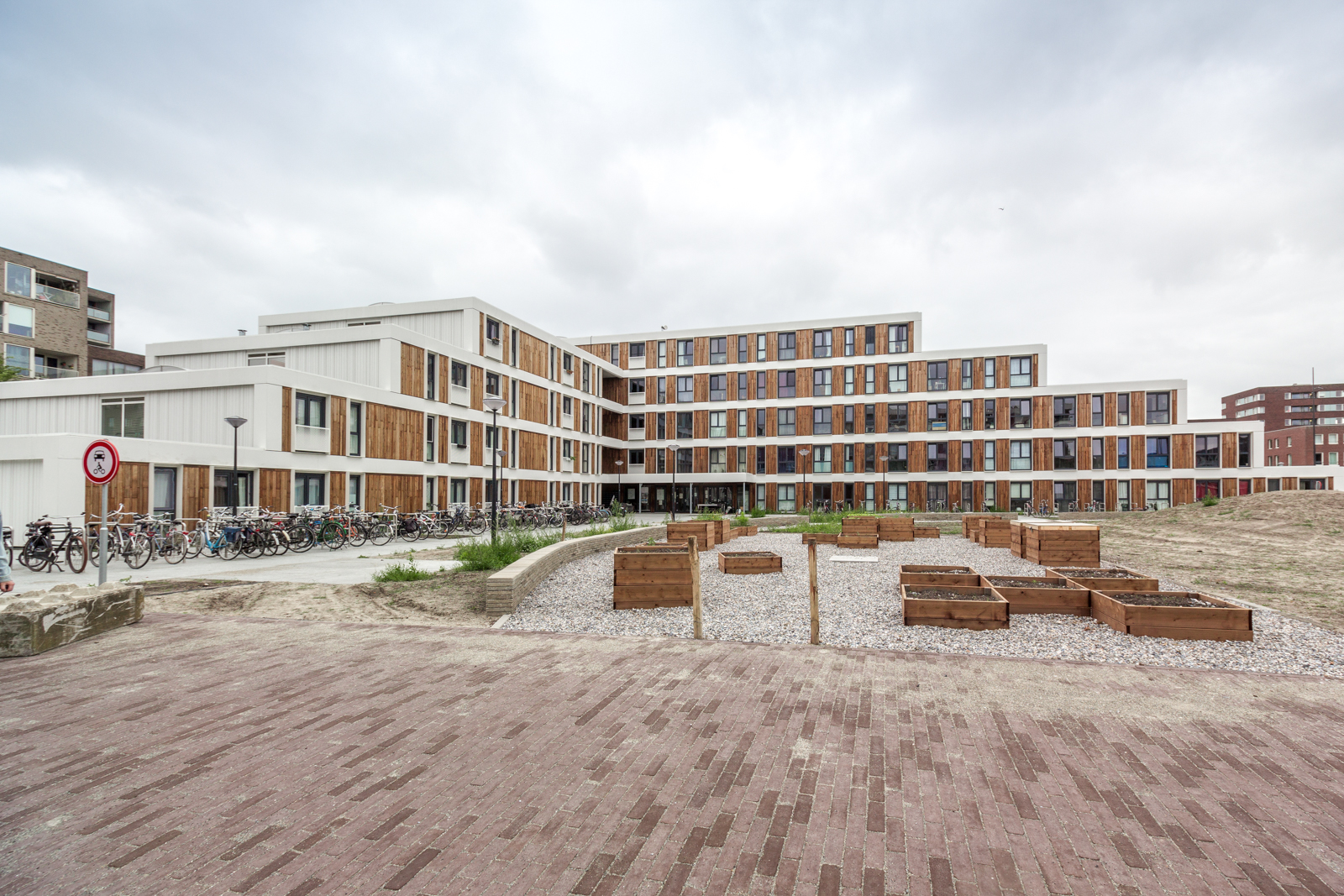 In collaboration with Eskra Bouw BV, Leegwater Houtbereiding bv handled the approx. 1,200 sq.m. wooden facade cladding for this project.