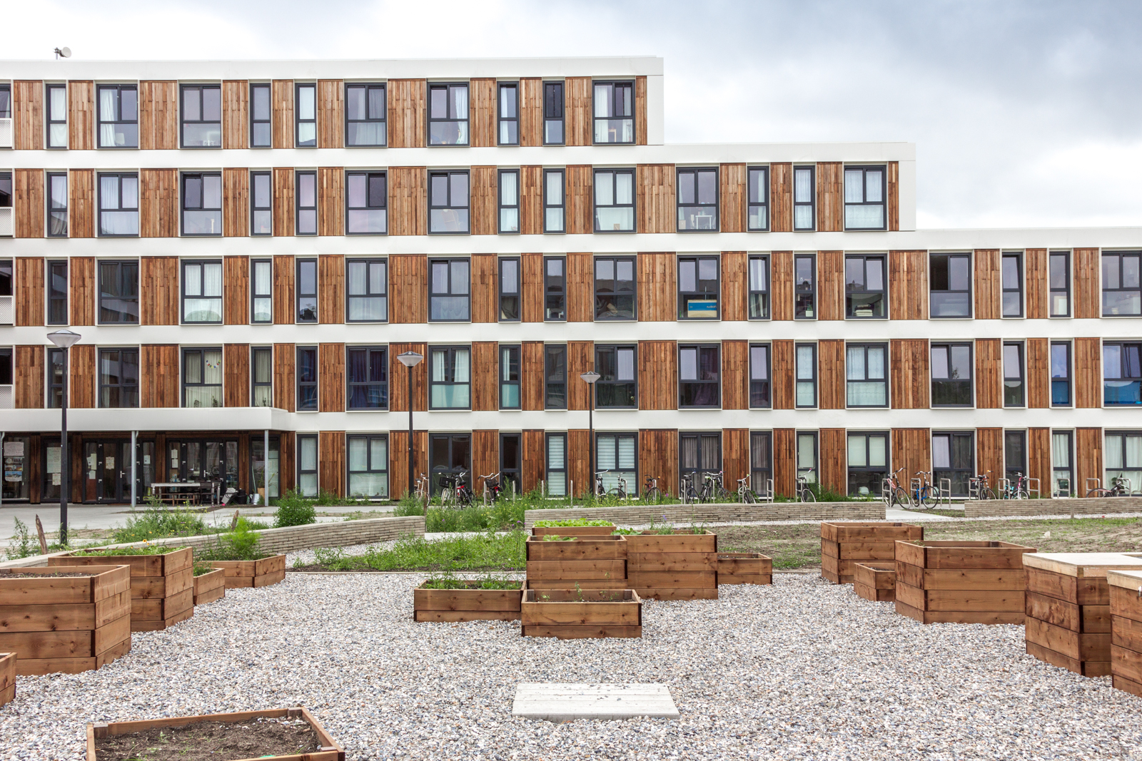 On a beautiful location, in the centre of IJburg, a special housing project was developed with 141 homes for starters aged 18 to 27 – half of which will be refugees with a residence permit. SET consists of modular units. These units comprise 103 single-person studios and 38 two-person apartments in addition to a large meeting area and three communal lounges. In this way, both the residents and neighbours are given space to establish a lively community.